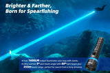 The Xtar DH1 1600 is a dive torch tailored for spearfishing with an output of 1600 lumens and a beam range of 355 metres, it is perfect for exploring underwater environments.